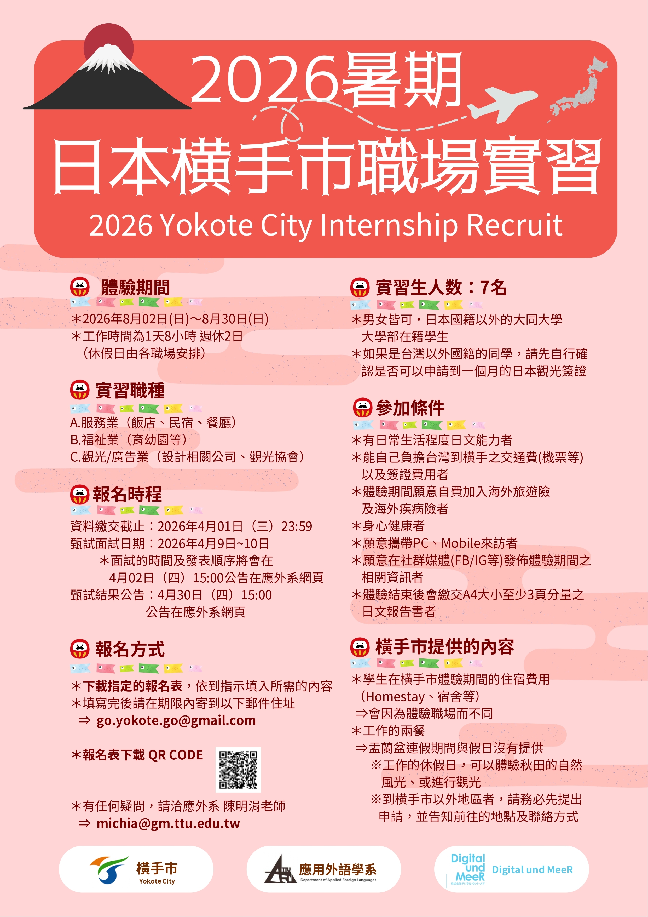 【公告】2026暑期日本横手市職場實習報名開始