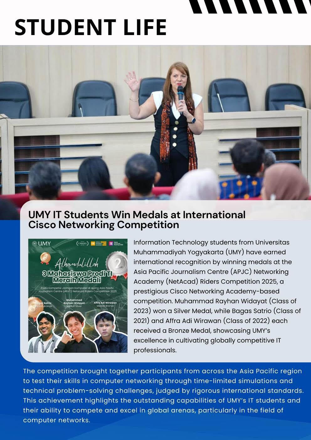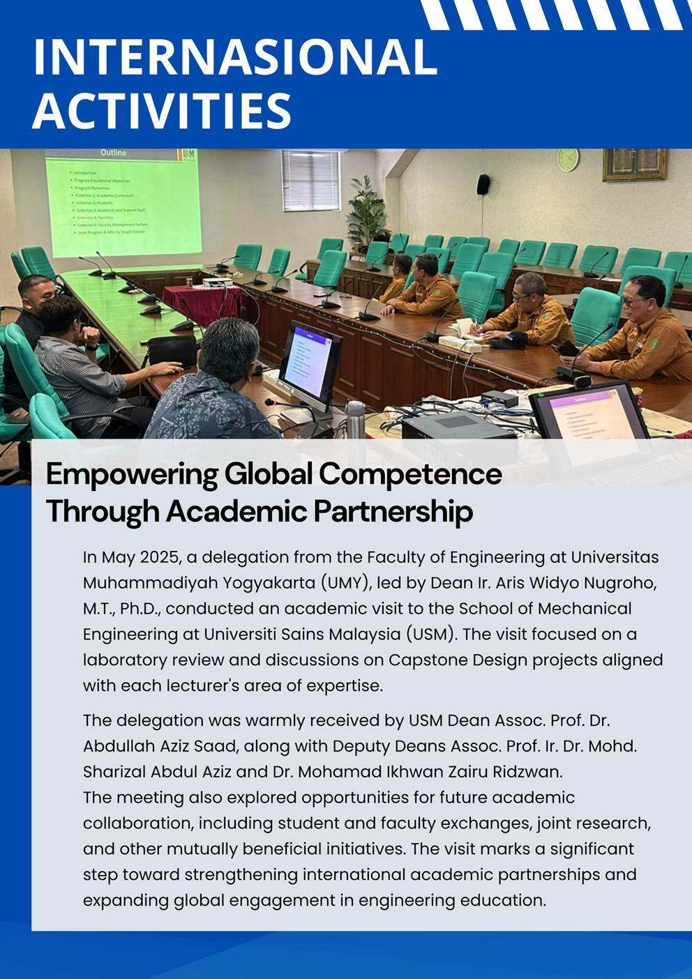 Universitas Muhammadiyah Yogyakarta (UMY) is delighted to present the latest updates on campus programs and activities, with a special focus on the Vocational Program UMY. Additionally, we are excited to share information about our global programs and opportunities, as well as our journals where students and professors from TTU are welcome to contribute and publish your scholarly works with us.